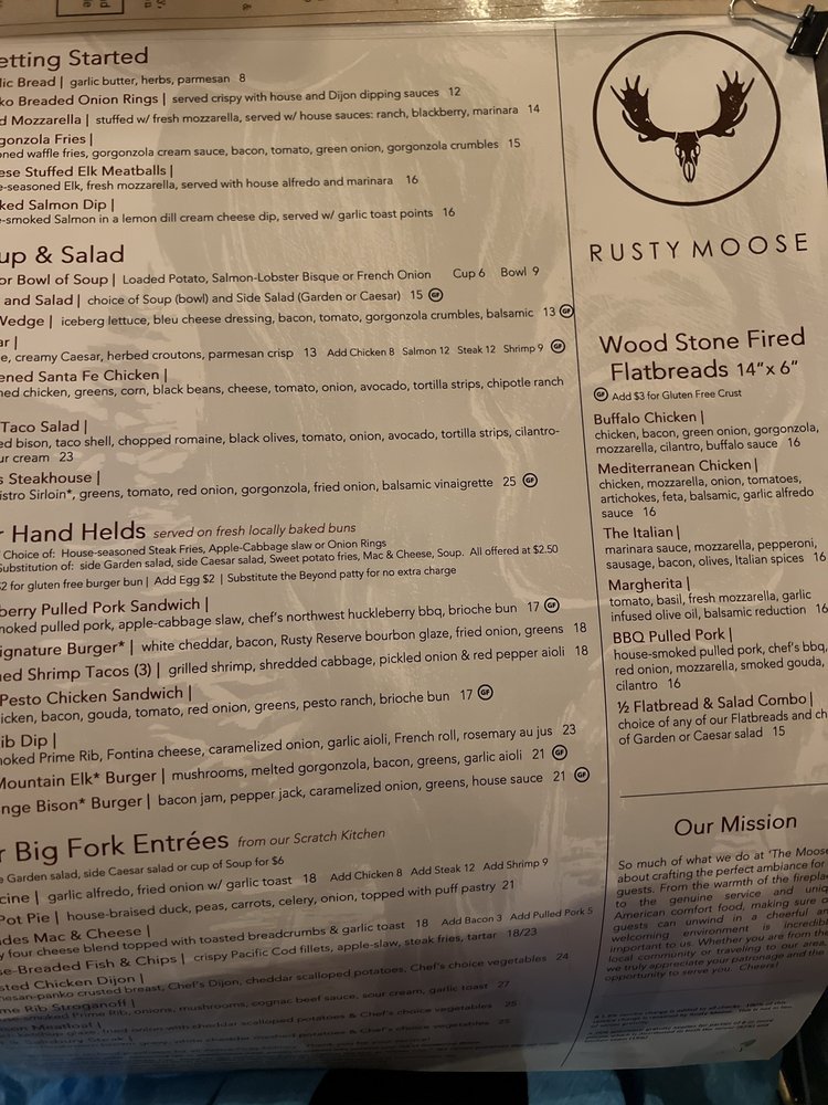 Welcome to Rusty Moose, a charming American steakhouse located at 9105 US-2, Spokane, WA, that masterfully combines rustic ambiance with a contemporary dining experience. Upon entering, diners are greeted by a cozy cabin-like decor, creating a warm, inviting atmosphere perfect for families or groups.